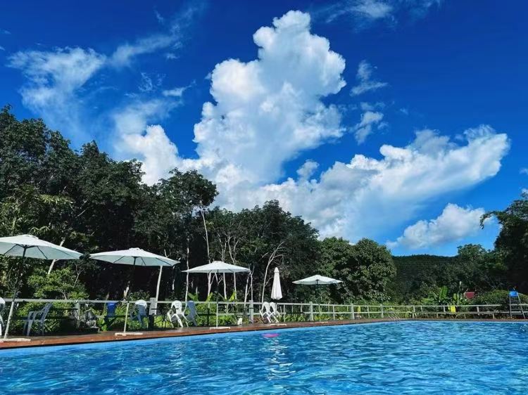 景区特色:景区内有丰富的水上运动和户外运动项目,如皮划艇漂流、轮胎漂流等,还有河马乐园丛林穿越、河马飞越等冒险项目。此外,营地还设有露天泳池,供游客嬉戏放松。